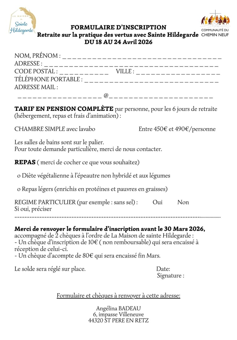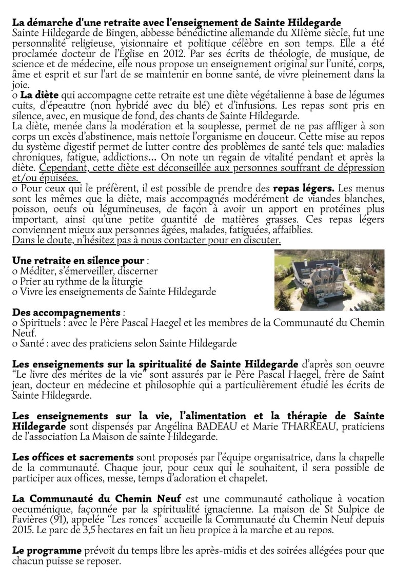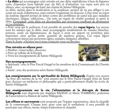 du 18 au 24 avril 2026 retraite avec diète hildegardienne à la communauté du chemin Neuf de Saint Suplice de Flavières